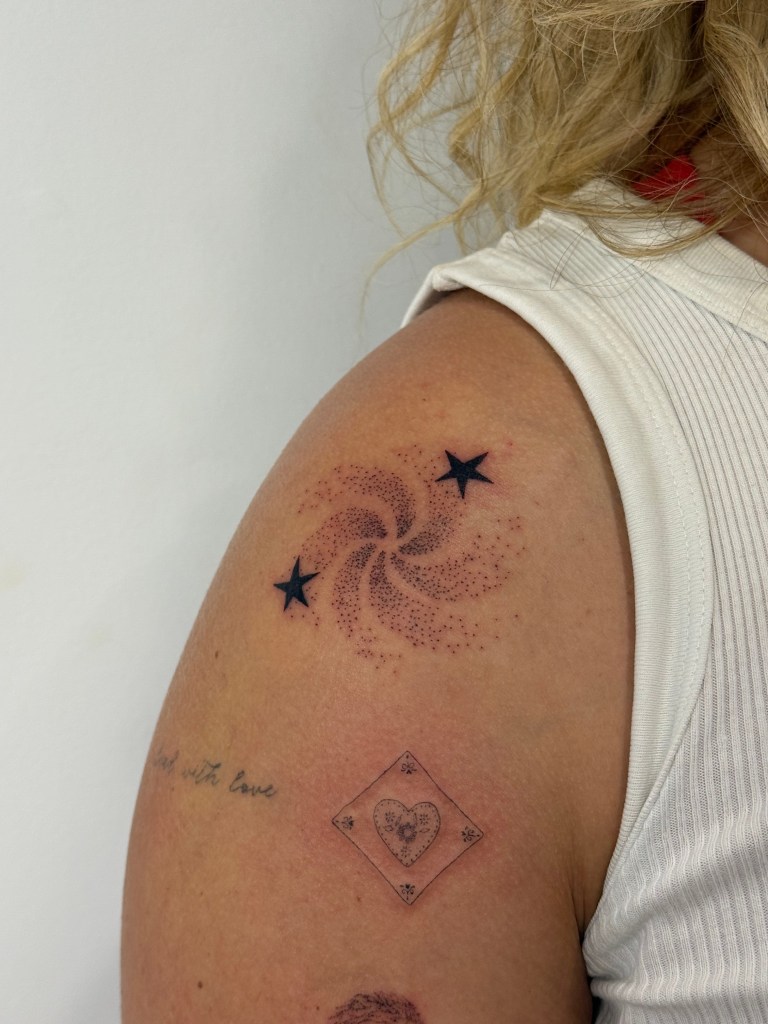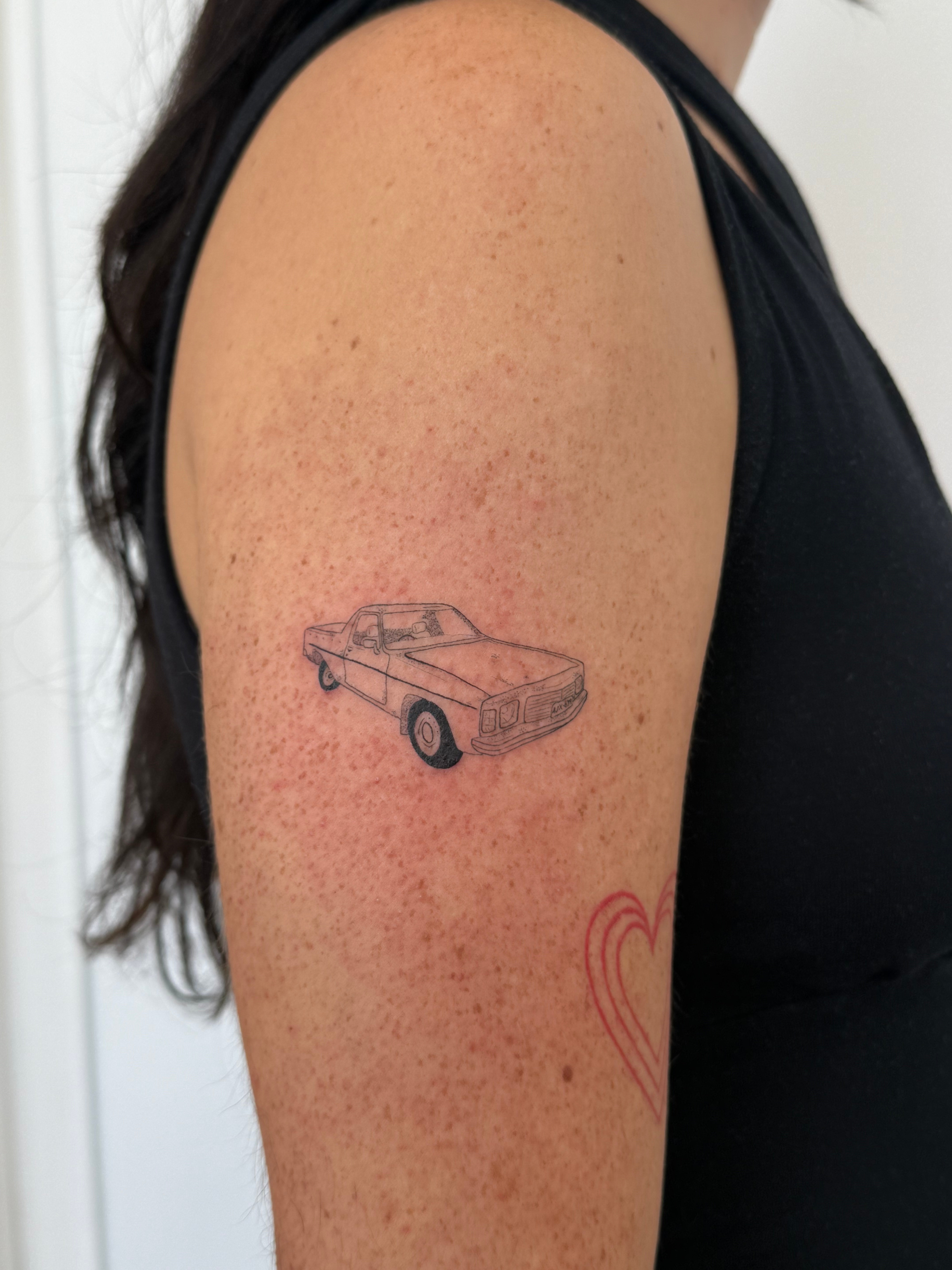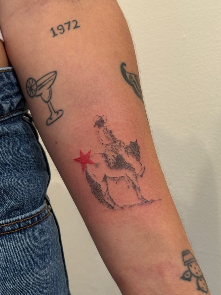 Meraki Ink is a fine line tattoo artist whose work feels intimate, nostalgic, and quietly expressive. Her style blends delicate linework with sketch-like textures and hand-drawn imperfections, creating pieces that feel personal -almost like pages lifted from a journal or fragments of memory. Her designs often explore storytelling through small, thoughtful details. whether it’s a fleeting moment, a symbolic object, or a softly rendered figure. There’s a subtle playfulness in her work, balanced by an underlying sentimentality that gives each piece emotional weight.